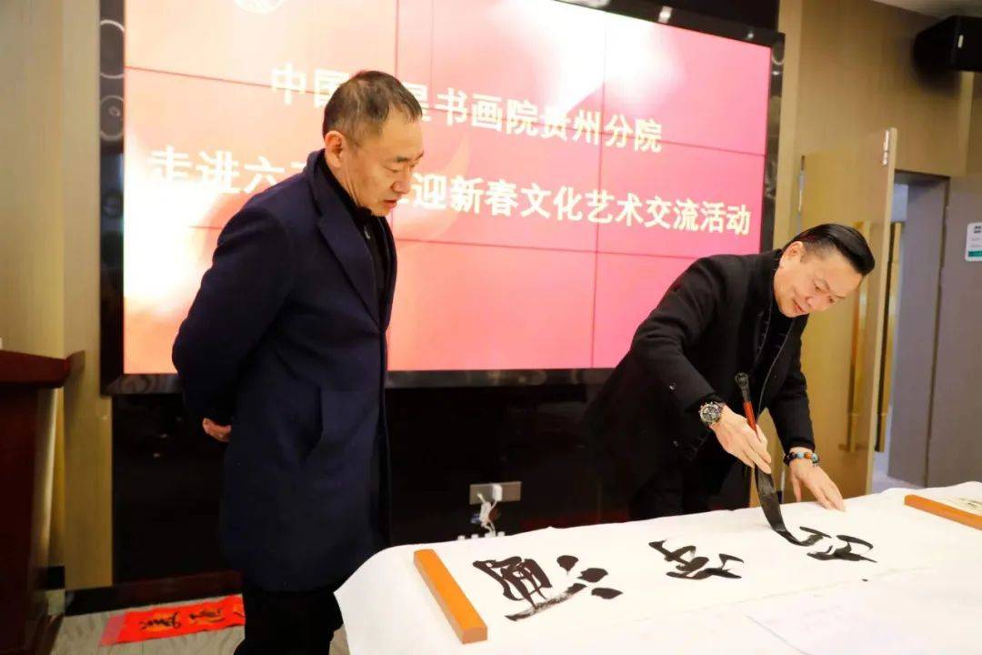 中國明星書畫院副秘書長兼貴州分院院長梁家輝,一級美術師、中天書畫院院長朱壽山,一級美術師、中國明星書畫院貴州分院畫家林誠,一級美術師、中國明星書畫院專家委員會顧問王建新,中國明星書畫院學術委員會顧問歐家友,中國明星書畫院貴州分院秘書長周靜,心經書法家申永平等現場揮毫送福送春聯送書畫。