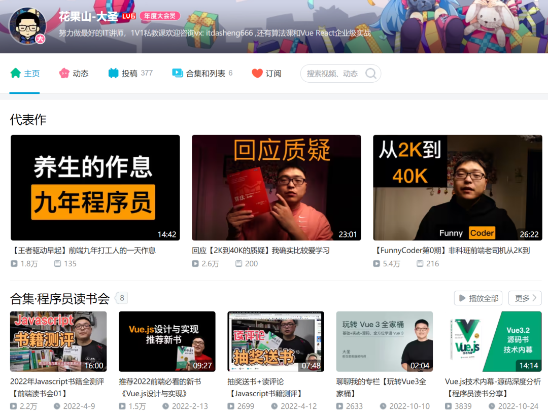 基於自己的學習經歷,他把在B站上的內容,分為了甄別程序員技術書、大佬分享等幾類,“我只需要在內容上保證專業度,哪怕剪輯上比較差”,大聖説。