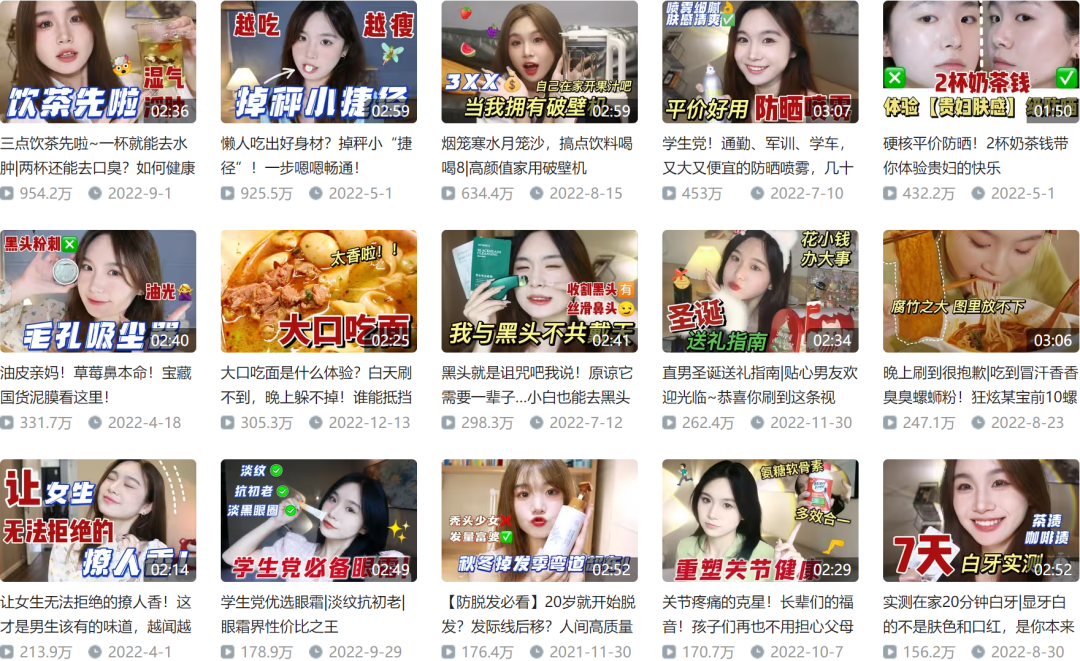 曲奇回憶,2021年年初,她剛上大一,在社交媒體平台上分享了生活照片,就有機構找到她,建議她到B站做UP主,她抱着試試的心態開始了。起初,她不確定要做什麼內容,嘗試過Vlog,分享過綜藝節目觀後感。直到有一次,她做的一期軍訓好用物的分享,流量暴漲了兩三倍,這讓她意識到,如果要做商業化,還是得做垂類內容,於是,便把賬號定位在了美妝博主上,從大學生視角出發,分享一些生活中的實用小技巧。