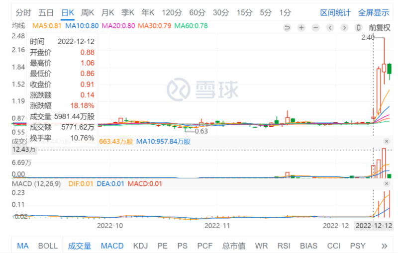 或受此消息影響,自12月12日起,思考樂教育一路大漲。其中,13日單日暴漲100%,三個交易日,累計上漲137.5%。