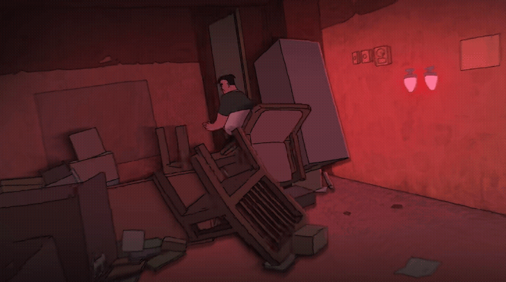 作者將空間畫面進行多次傾斜和顛倒的處理,將酗酒男主的醉意和視角精準的復刻了出來。