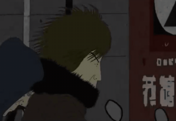 畫面非常的壓抑,遍地的垃圾和煙頭,整個城市都處於一種灰濛濛的狀態,衰敗是城市的底色。