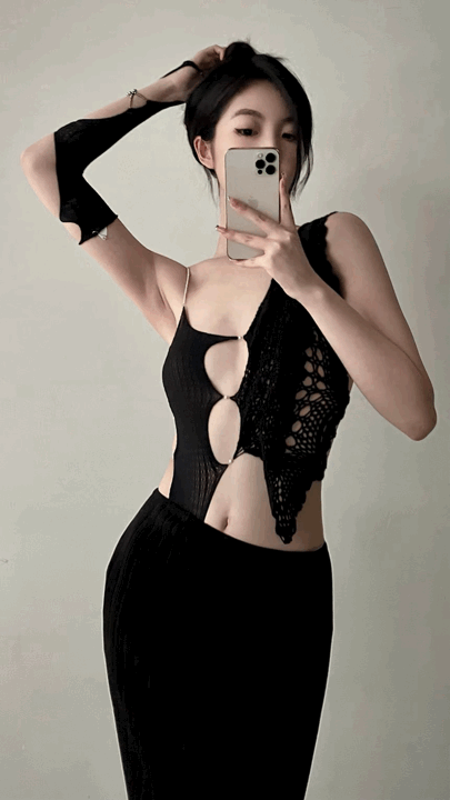 宛如內衣般輕薄貼身的彈力針織面料、不規則的鏤空式剪裁,帶來視覺上極強的衝擊效果。