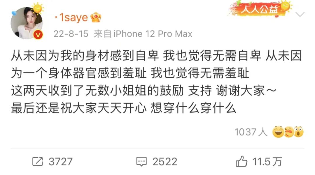 儘管因為被謾罵而關閉了後台評論,但對於這起“穿衣風波”,@1saye 還是給出了她本人的回應,真誠且坦蕩: