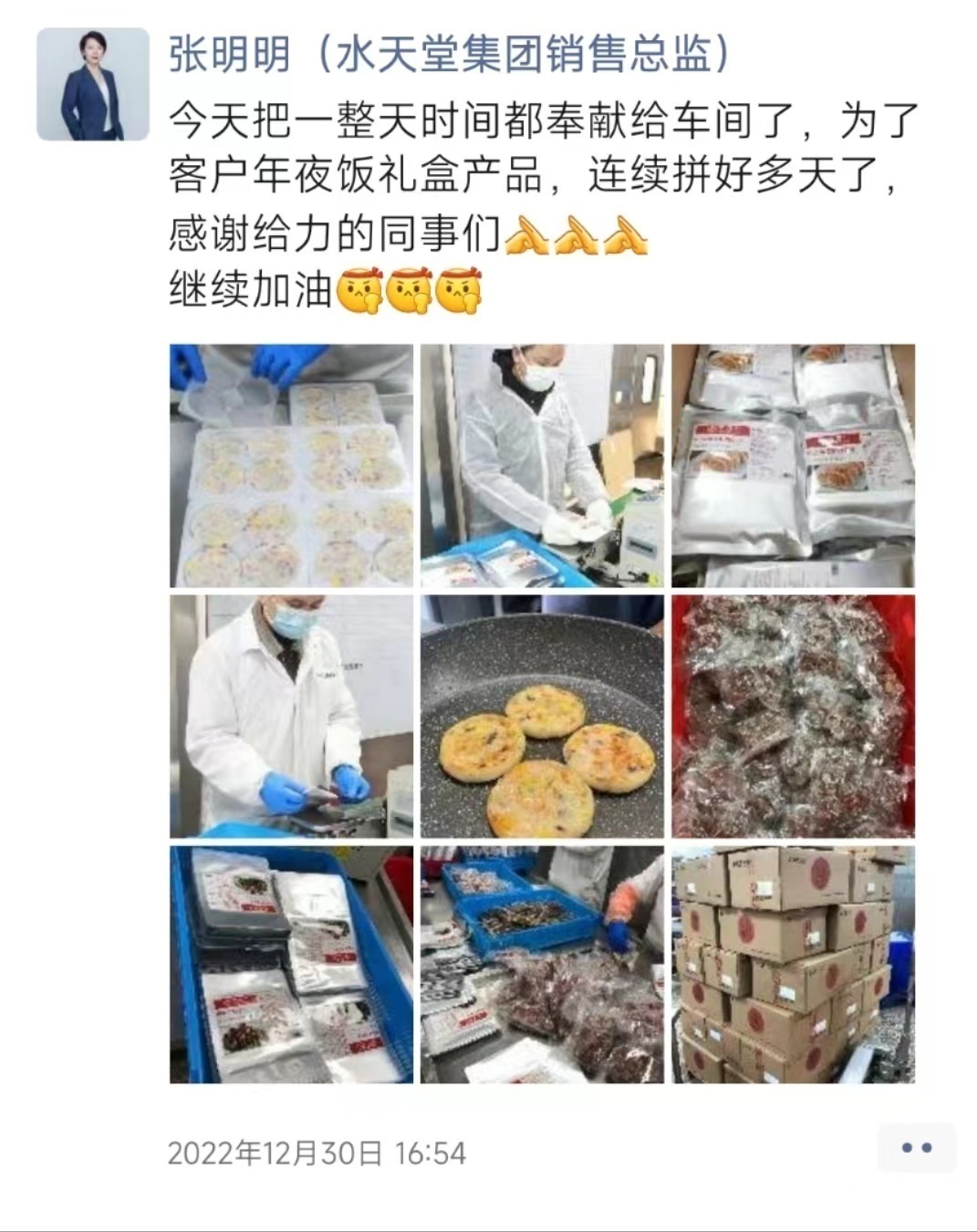 水天堂集團執行董事、銷售總監張明明也表示,今年水天堂食品廠推出了8道菜和12道菜兩款年夜飯禮盒,為知味觀、豐收日、松鶴樓、蟹太太、淮揚菜集團等企業貼牌定製禮盒或單品。12月底大部分人“陽”過後,訂單量開始激增,訂單翻了幾倍。