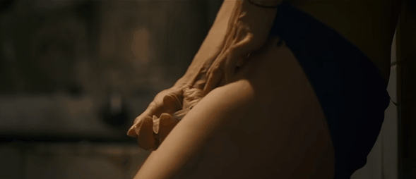 演員用瘋狂的眼眸發出信號,打(針)打這裏。