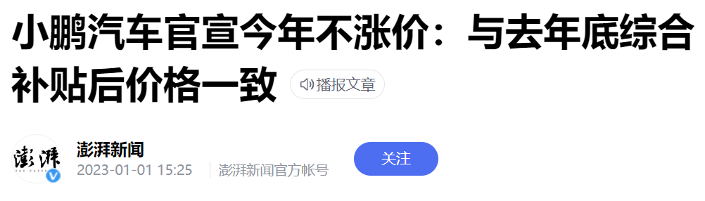 小鵬汽車宣佈,所有車型售價去年啥樣,今年還啥樣,一分不漲。