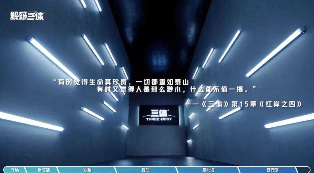 寄蜉蝣於天地,渺滄海之一粟。《解碼三體》的大眾意義在於洞察普通人很難達到汪淼和羅輯那樣的思維深度,但我們確實可以站在自己的角度代入大史,思考一些超脱日常紛擾的宏大命題。