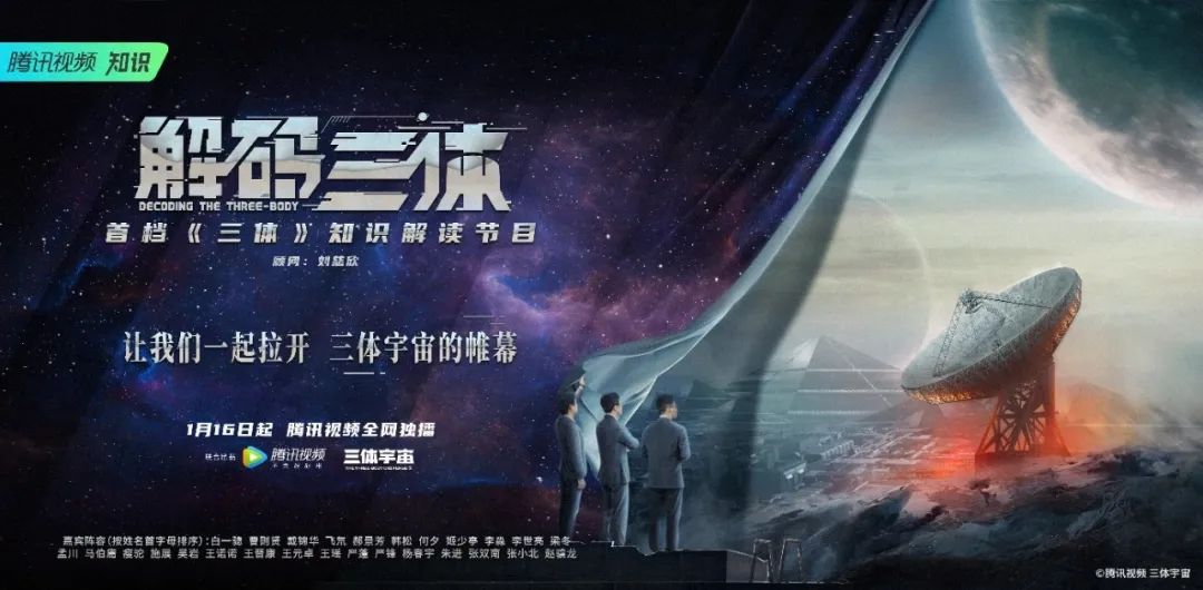 **雖然沒有到“開談不説紅樓夢,讀盡詩書也枉然”的程度,但完全不瞭解《三體》原著及其衍生話題,過年恐怕少了一個引開勸學勸婚勸生火力的重要話題。**鑑於此,騰訊視頻知識頻道的《解碼三體》可謂解了大家的燃眉之急。節目深入淺出地拆解《三體》的文學魅力和世界級影響力,體系完備且知識點密集。