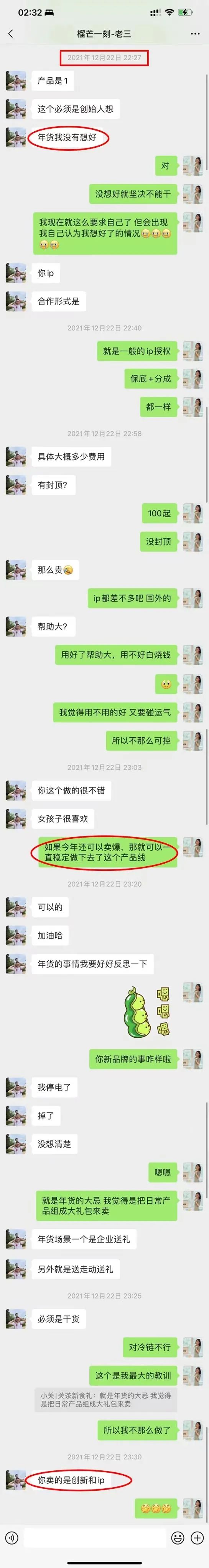 出於對朋友的信任和坦誠交流的心態,我非常認真地向老三分享了關茶對於年禮產品設計的思考,聊天記錄如下: