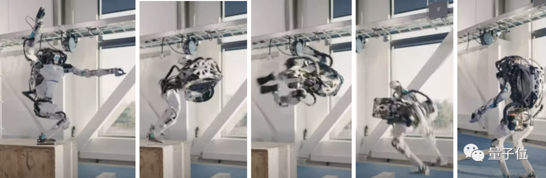 完成任務之後,它也是不走尋常路,直接從架子上跳下來,來一個體操式前空翻精準落地。