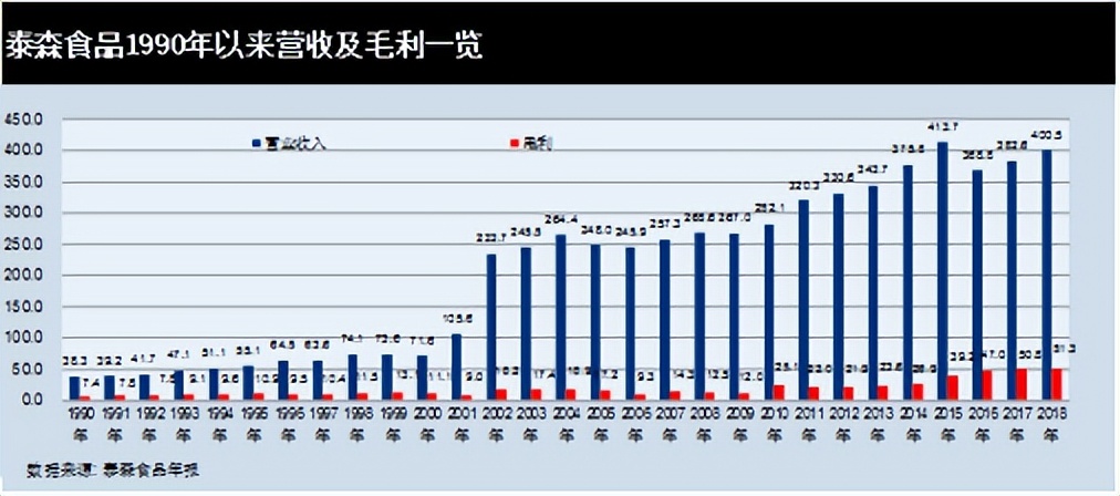 2001年,泰森食品收購了IBP, inc.,泰森超越雞肉業務成為當時世界上最大的雞肉、牛肉和豬肉加工商和銷售商(雞自己養殖,牛和豬從養殖户手中收購然後再處理)。