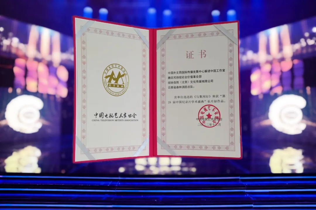 近日,第28屆中國紀錄片學術盛典暨第15屆深圳青年影像節在深圳舉行。本屆評選活動從全國各級電視台、影視製作機構報送的591部作品中推選出206項入選作品,角逐七大類、三十餘個評選項目。紀錄片《與象同行》獲得第28屆中國紀錄片學術盛典長片好作品榮譽。