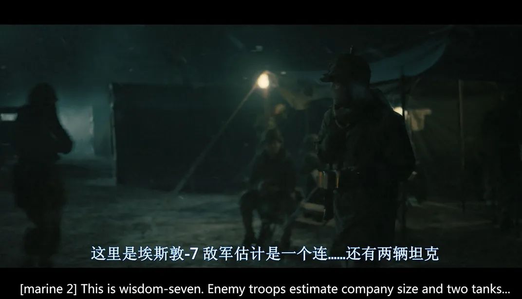 在2022年的《忠誠》當中,為了體現美軍被包圍在長津湖地區的不容易,也給志願軍部隊進行了加強,《忠誠》中一句表現美國海軍陸戰隊彙總志願軍情報的台詞是這樣寫的:“敵軍大概一個連,還有坦克兩輛。”