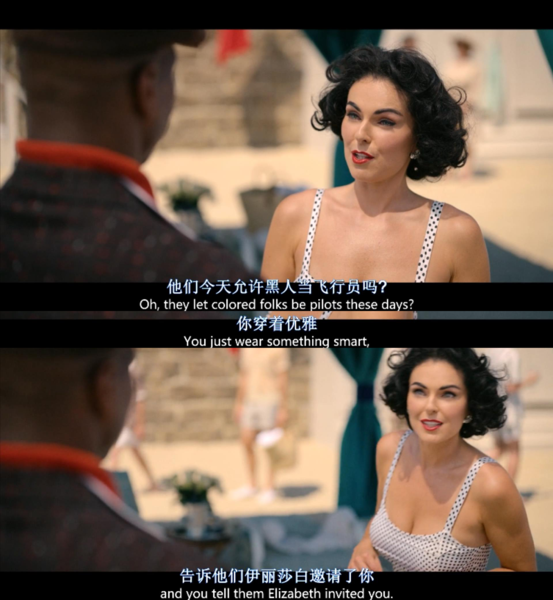 ▲白人女電影明星伊麗莎白·泰勒,邀請主角參加派對,以此展現對黑人飛行員的平權支持
