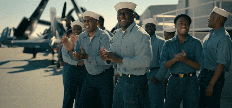 通過這些場景,電影不但展示了那個年代存在的種族歧視,更展示了美國海軍作為一個“大家庭”團結向上,整體向好的一面以及當時社會進步力量對黑人的幫助,這也算是好萊塢式正能量的一種。