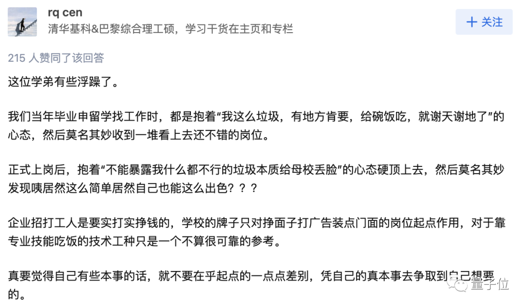 最後,他還對這位“有些浮躁”的學弟建議:真要覺得自己有本事,就不要在乎起點的一點點差別。