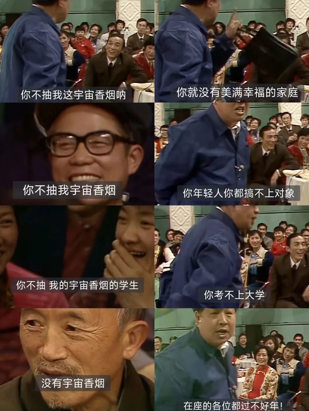 這宇宙牌香煙有多深入人心呢?在剛才提到的陳佩斯和朱時茂的小品《吃麪條》中,還“call back”了這個梗,情節中,小演員給大導演遞煙時,專門説這是宇宙牌香煙。