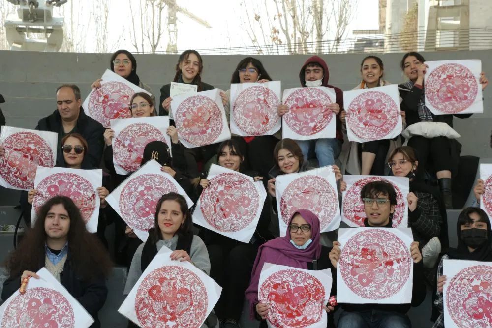 1月18日,伊朗青年學生在首都德黑蘭的一處公園展示中國春節裝飾品。新華社記者高文成攝
