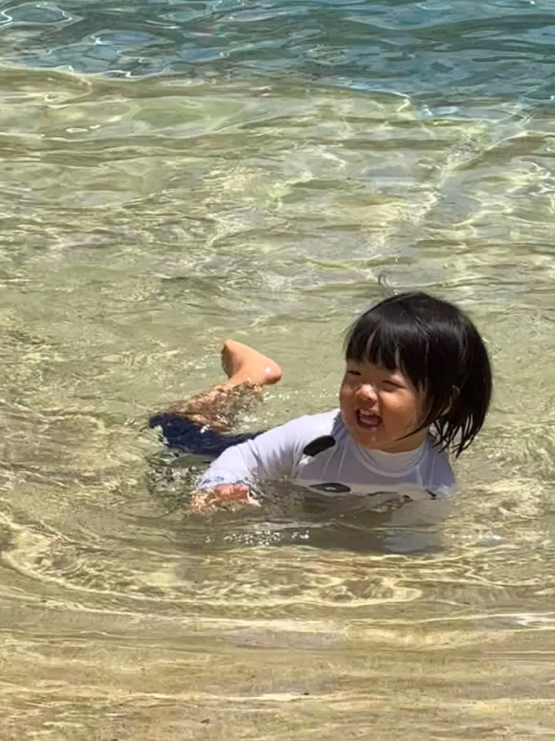 小陳每天帶着妹妹下兩次泳池,上午一次下午一次。有時撈上來剛洗乾淨,她已經睡着了。