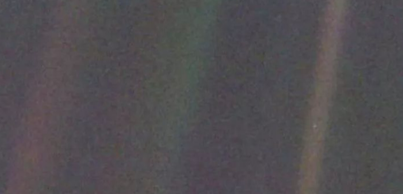 細心再看,你會看見一個小點。再看看那個光點,它就在這裏。那是我們的家園,我們的一切。你所愛的每一個人,你認識的每一個人,你聽説過的每一個人,曾經有過的每一個人,都在它上面度過他們的一生。我們的歡樂與痛苦聚集在一起,數以千計的自以為是的宗教、意識形態和經濟學説,所有的獵人與強盜、英雄與懦夫、文明的締造者與毀滅者、國王與農夫、年輕的情侶、母親與父親、滿懷希望的孩子、發明家和探險家、德高望重的教師、腐敗的政客、超級明星、最高領袖、人類歷史上的每一個聖人與罪犯,都住在這裏——一粒懸浮在陽光中的微塵。
