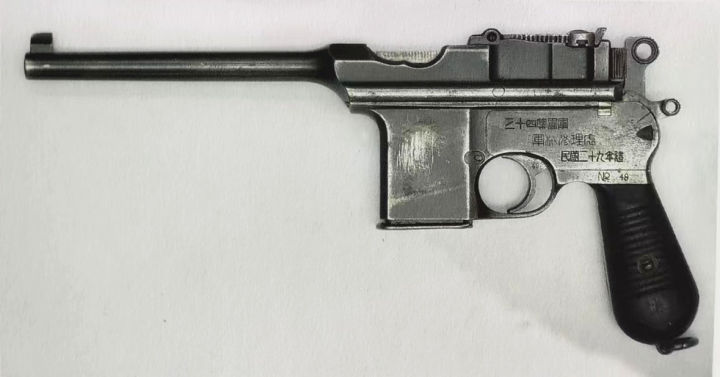 這支903手槍,旁開門上銘刻着“三十四集團軍/軍械修理處/民國二十九年造”的漢字,表明這是國民黨中央軍胡宗南所部於1940年仿製的。
