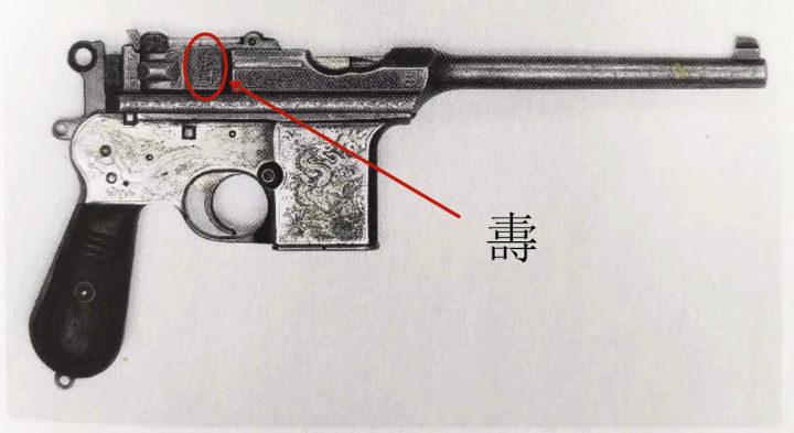 博物館那支槍因為鍍了金,看不到銘文,但只要稍稍用心,對照一下基本型就明白了。任何手槍,豪華鍍金版的出品都只能晚於基本型,而絕不可能早於基本型。也就是説,這支鍍金的900手槍,它的出品只能晚於1928年,不可能早於1928年。