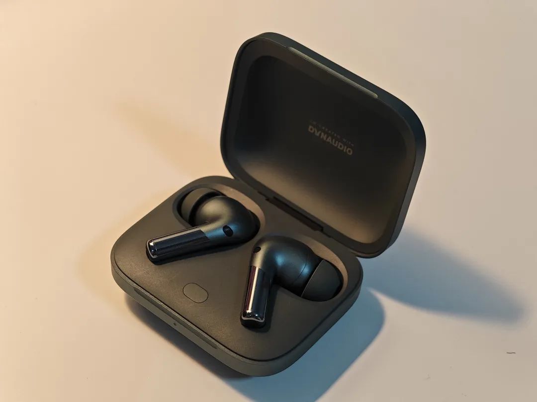 相比一代,二代的一加 Buds Pro 在耳機盒上多了一個丹拿聯名的 Logo,算是和老大哥 OPPO Enco X 系列,得到了一樣的待遇。