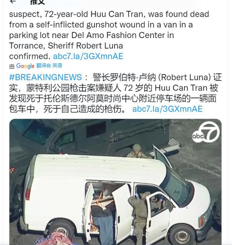 當地警方説,事件發生後,有五名男子和五名女性遇害,另有10人受傷。當局確認嫌疑人為72歲的(亞裔)男子。嫌犯飲彈自盡,警方正在調查其動機。