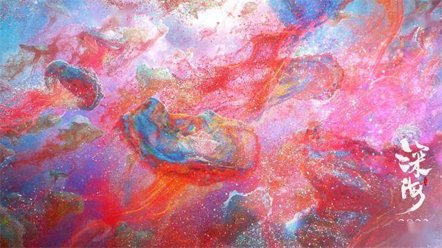 《深海》的審美是極高的,色彩明麗鮮豔,用色大膽宛如梵高。還刻畫了一些形態模糊的意象,可以説它們是水母,也可以是魚,或者不具有任何意義,全憑觀眾想象。影片中還有很多值得仔細欣賞的小東西,比如空氣中漂浮的小細閃,就像陽光折射在糖紙上的光澤,能看得出創作團隊試圖營造一個繽紛的夢。
