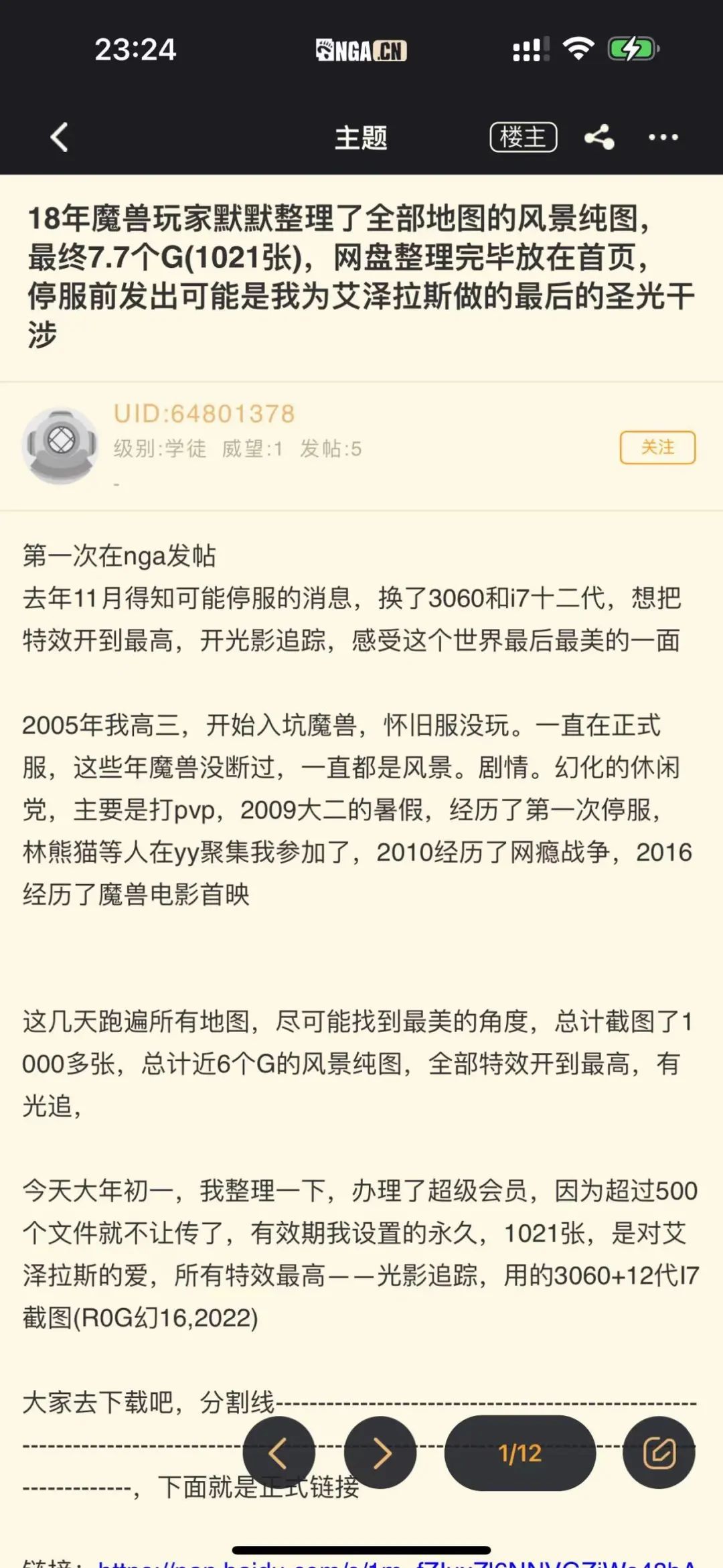 NGA的一位老哥跑遍了所有地方,整理了魔獸所有地圖的風景純圖,1000多張,一共7.7G,放在網盤裏免費下載: