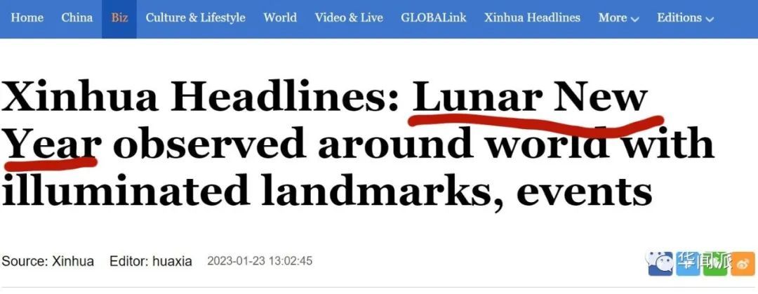 由此相對應的是,中國官方媒體在報道中國以外的國家和地區或者民族慶祝中國新年活動時,也會用“Lunar New Year”這一表述。