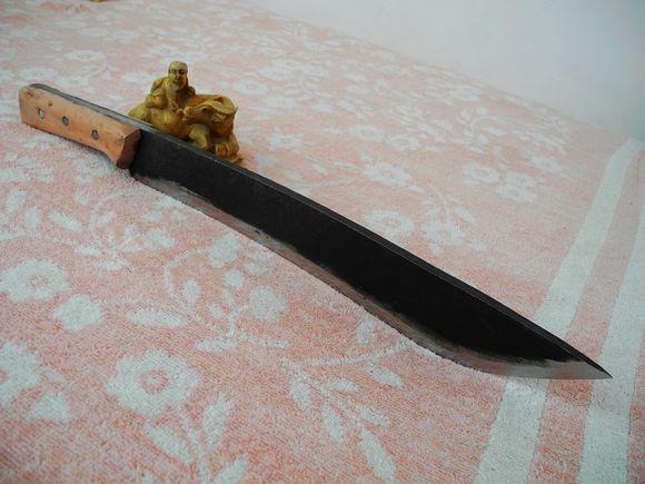 殺豬是桶心臟,刀子是細長的帶彎的,是向內彎的,有點像網上的廓爾喀彎刀,或者説牛腿彎刀。和圖片很類似