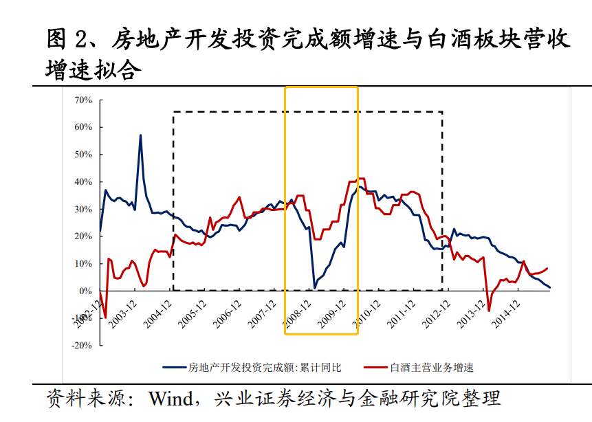 最明顯的表現是2008年。2008年,“世界金融危機”爆發,經濟短暫下行,但我國迅速出台“4萬億”計劃,房地產騰飛,公路、鐵路、基礎設施紛紛上馬,白酒消費立刻跟着迅速起伏。