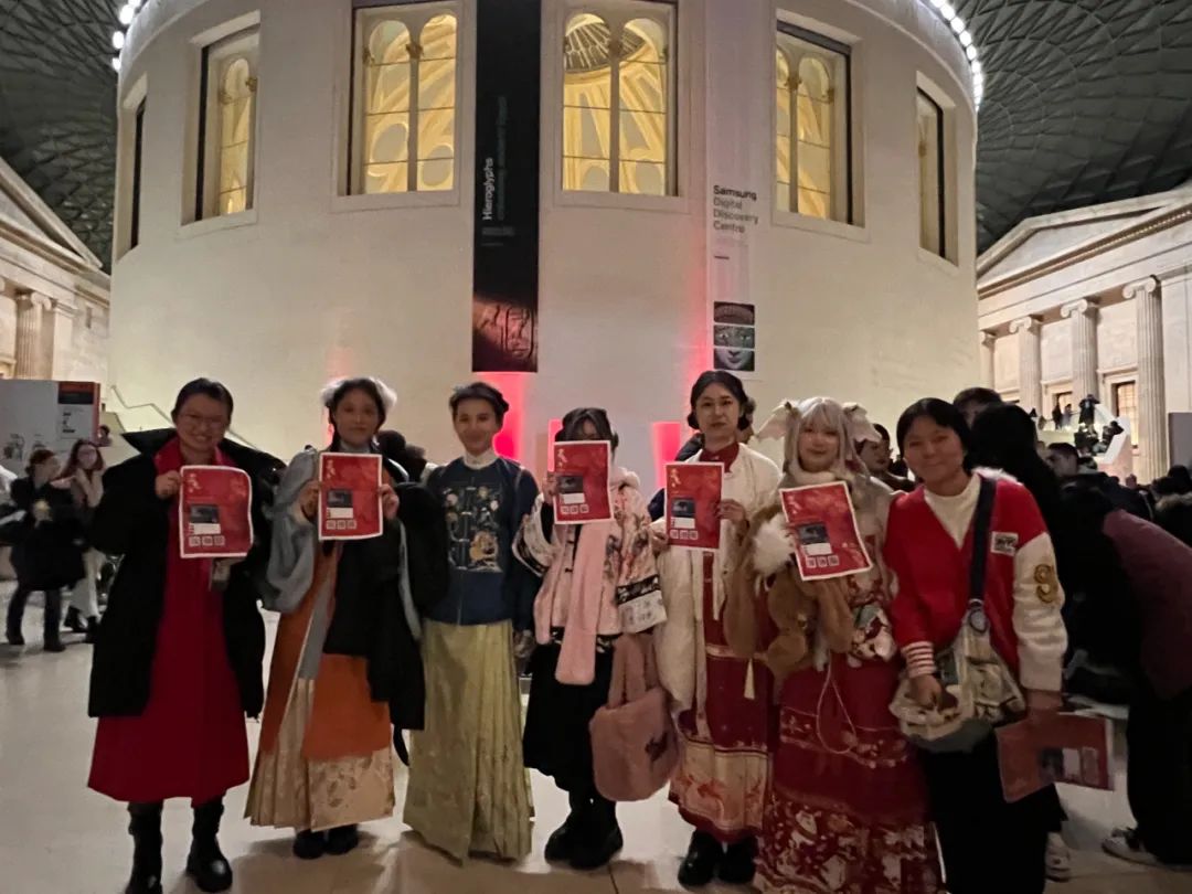 平素喜愛漢服的她隨即把穿漢服去博物館傳播中國春節文化的想法發到了社交媒體上,得到不少人支持。20日當天,這些中國留學生帶着糖果和介紹中國春節文化的海報,聚在了大英博物館。其中,有人專門從諾丁漢乘坐兩個小時火車趕到倫敦。