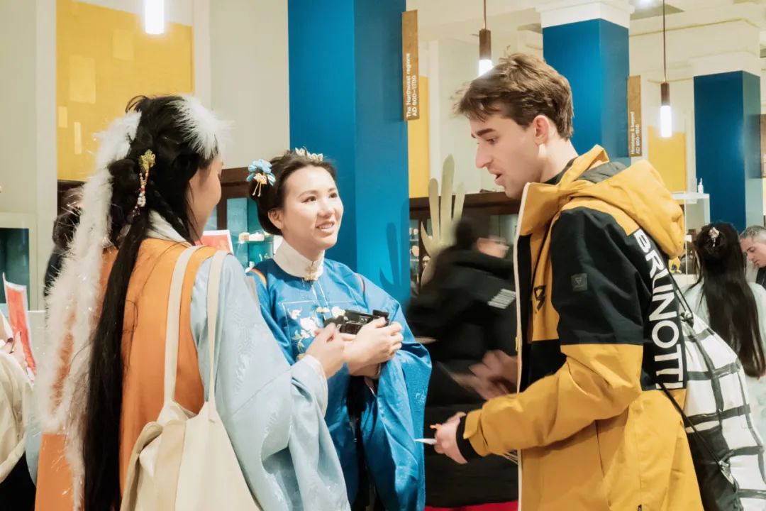 在博物館熙攘的人羣中,這些留學生向人們耐心介紹中國春節歷史和傳統,按照年俗給人們送上糖果,分享新春的甜蜜和祝福,以潤物細無聲的方式介紹中國文化,“一些孩子看到我們穿着漢服,很好奇,想要合影,我們就給他們講述中國春節的故事”。