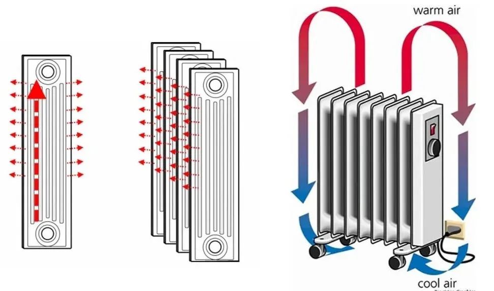 而後熱源通過熱對流或凝結的方式將熱量傳遞給散熱器的腔壁,使其温度升高,最後散熱器的外表面通過熱對流和熱輻射的方式將熱量傳遞給室內的空氣,從而產生源源不斷的熱量,使得室內的温度升高,實現取暖。