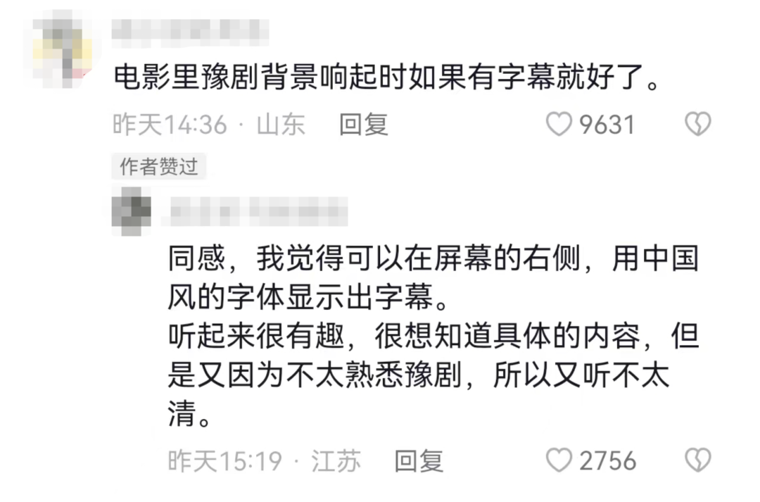 不過,在接連兩次觀影中,我一直都有這樣一個擔憂:作為從小聽豫劇的觀眾,我都聽不清全部台詞,更何況那些沒聽過豫劇的人……