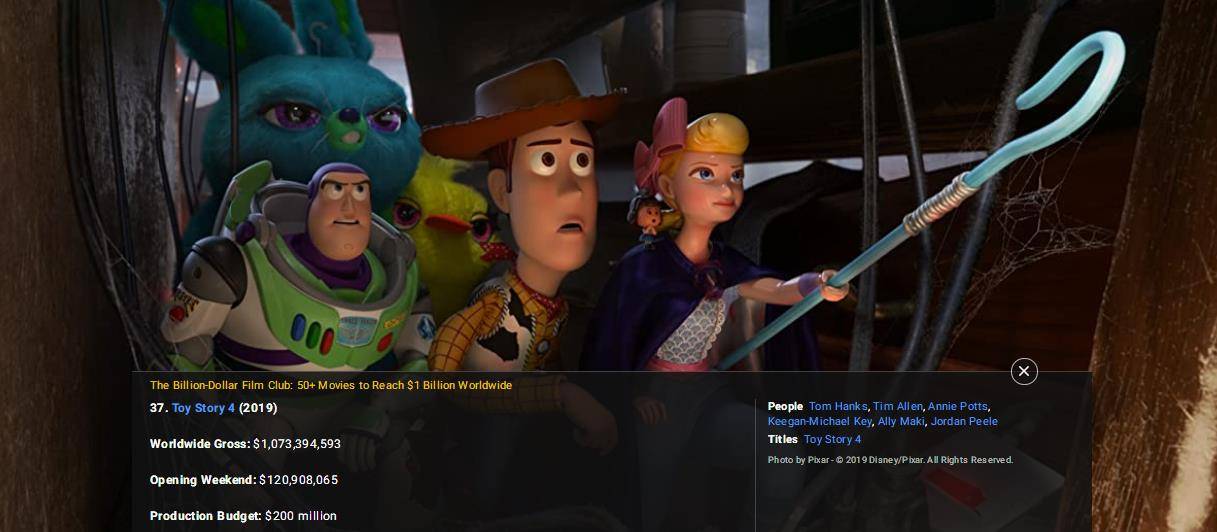 37、玩具總動員4Toy Story 4(2019) 全球票房: $1,073,394,593