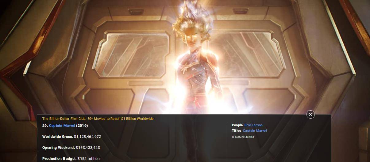 29、驚奇隊長Captain Marvel(2019) 全球票房: $1,128,462,972