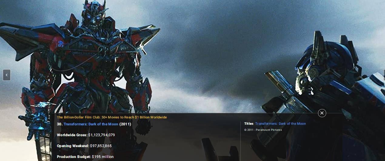 30、變形金剛:月之暗Transformers: Dark of the Moon(2011) 全球票房: $1,123,794,079