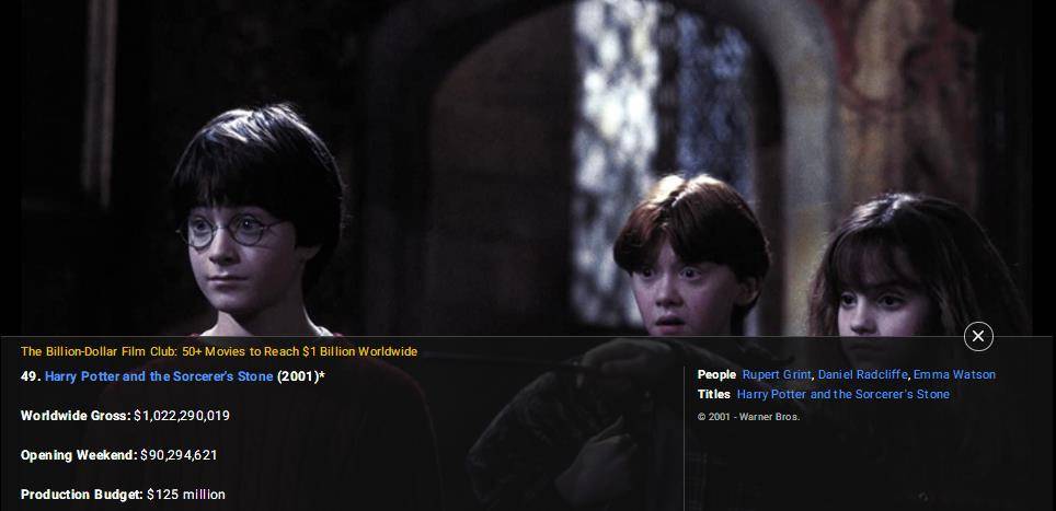 49、哈利·波特與魔法石(2001)Harry Potter and the Sorcerer’s Stone 全球票房: $1,022,290,019
