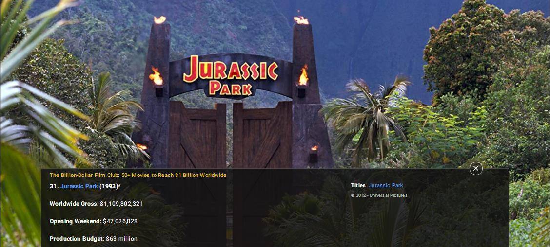 31、侏羅紀公園Jurassic Park(1993) 全球票房: $1,109,802,321