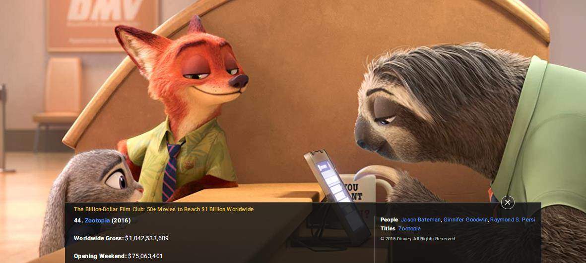44、瘋狂動物城Zootopia(2016) 全球票房: $1,042,533,689