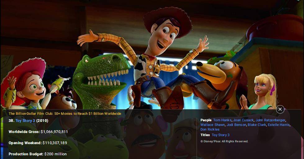 38、玩具總動員3Toy Story 3(2010) 全球票房: $1,066,970,811