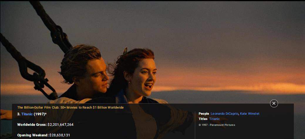 3、泰坦尼克號Titanic(1997) 全球票房: $2,201,647,264