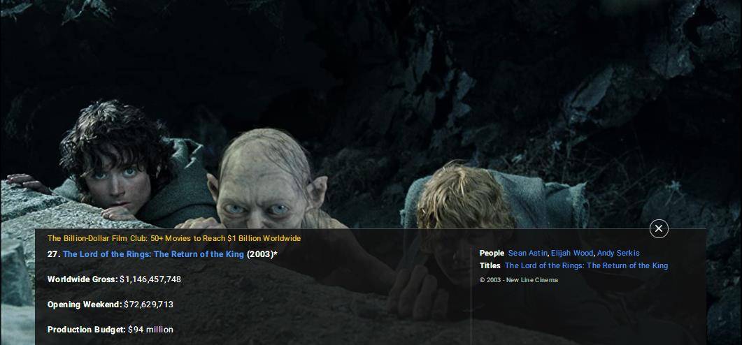 27、指環王:王者歸來The Lord of the Rings: The Return of the King(2003) 全球票房: $1,146,457,748