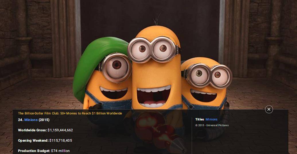 24、小黃人Minions(2015) 全球票房: $1,159,444,662