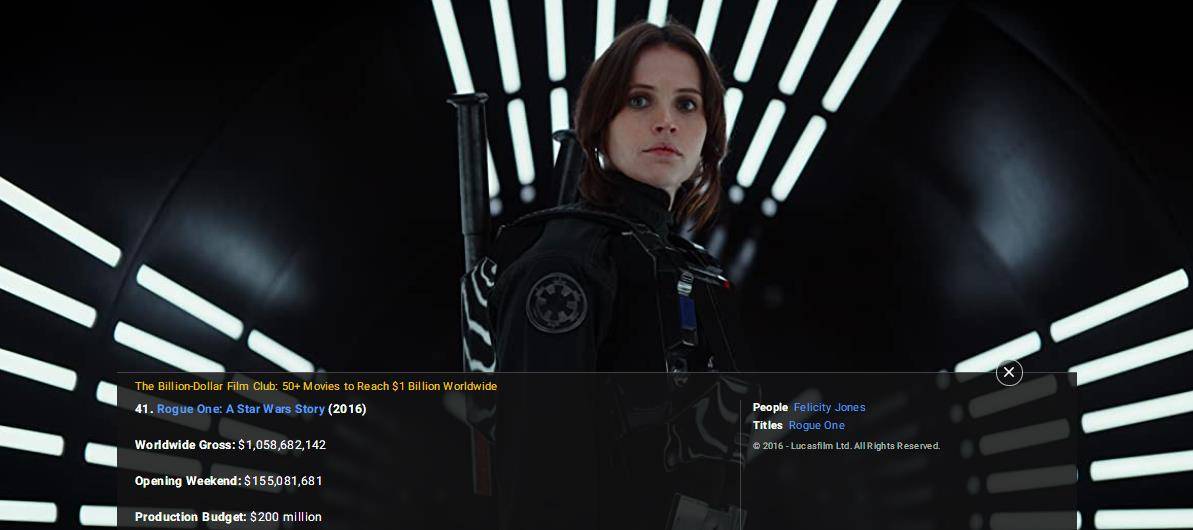 41、俠盜一號:星球大戰的故事Rogue One: A Star Wars Story(2016) 全球票房: $1,058,682,142