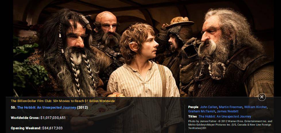50、霍比特人:意外旅程The Hobbit: An Unexpected Journey(2012) 全球票房: $1,017,030,651